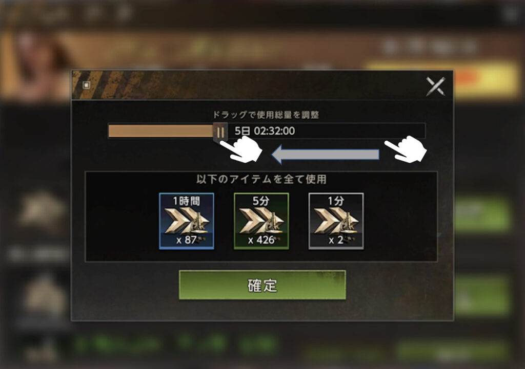 ![]() | スピードアップ2500分を使用する | 240 | 480 |