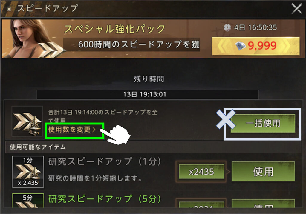![]() | スピードアップ4200分を使用する | 450 | 900 |