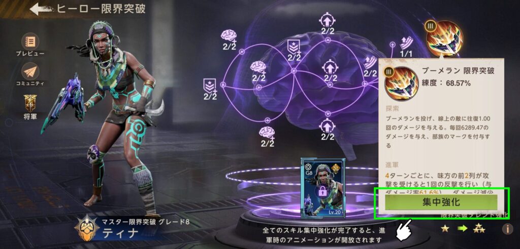 栄光への道に同時消化できるタスクが無いため、基本的には最強サバイバル指揮官(SOTF)や地区対抗戦(SVS)での使用をおすすめします。