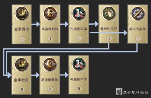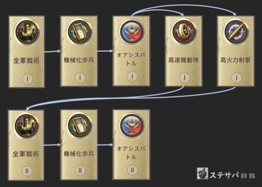 | 2 | 機械化歩兵Ⅰ | 高火力射撃Ⅰ | 高速機動隊Ⅰ | 30x3 | 125 |