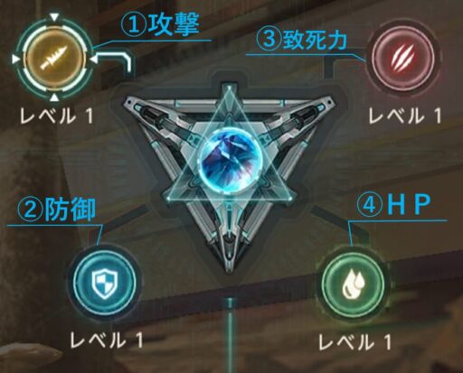 | Lv | ①巨獣 攻撃力 | ②巨獣 防御力 | ③巨獣 致死力 | ④巨獣 HP | |