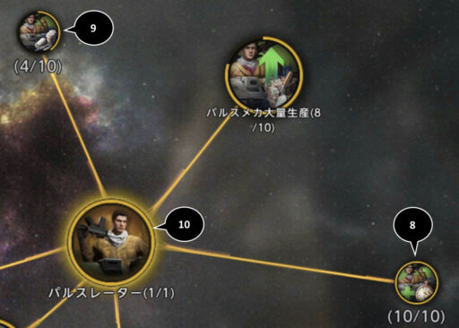 | パルスメカ大量生産 | パルスレーターの訓練にかかる資源消費減少 |