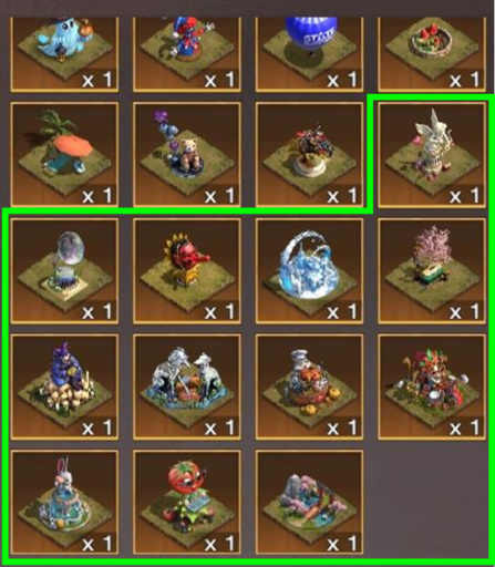 輝きの占星術などのイベントで手に入る「上級追加効果の像エネルギートークン上級追加効果の像エネルギートークン」では多くの装飾物と交換できますが、優先して交換したいものを考えます。(装飾ボックスも同様)