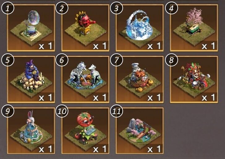 これらは装飾物実装時初期のもので、当時の仕様により重要なパラメータである進軍参加上限が上がるため優先度が高くなります。